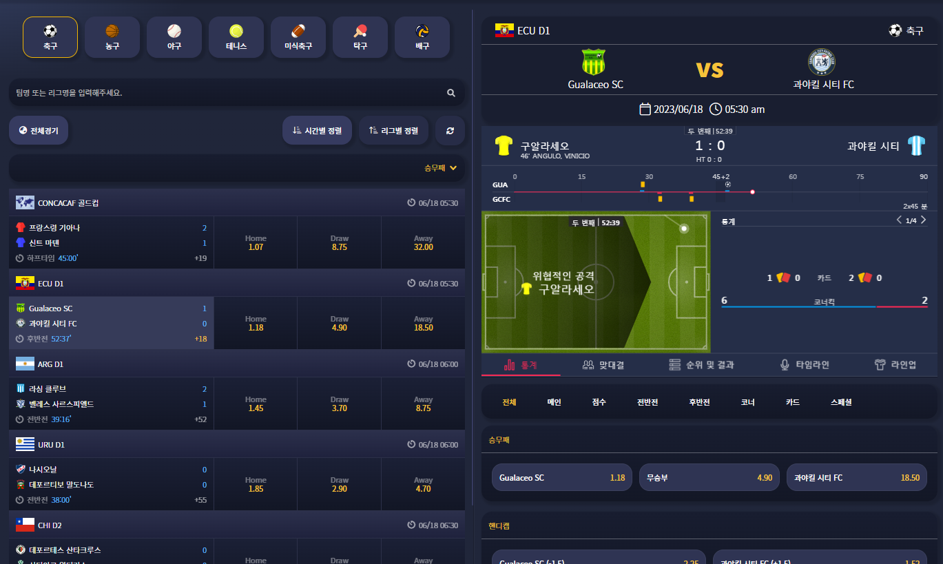 전 세계 모든 스포츠경기 발매와 더불어 다양한 배팅옵션,