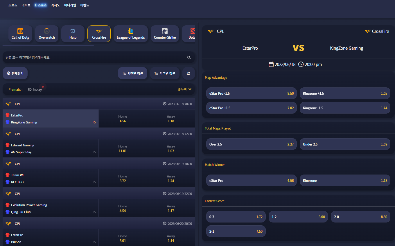 이에 따라 원하는 게임에 베팅 금액을 넣을 수 있고, 승리 시에는 배당률에 따라 수익을 얻을 수 있습니다.